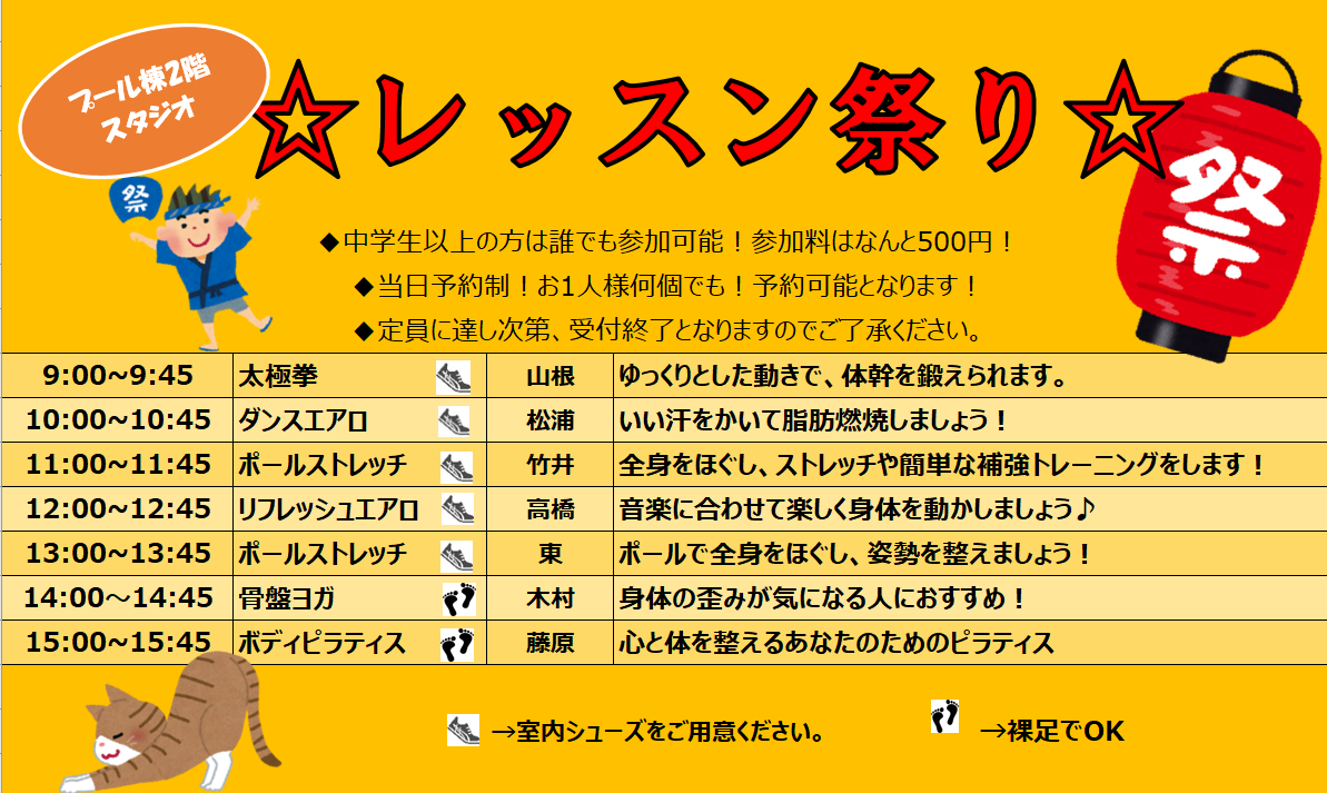 【周年祭追加情報その⑥】 スタジオレッスン祭り開催!